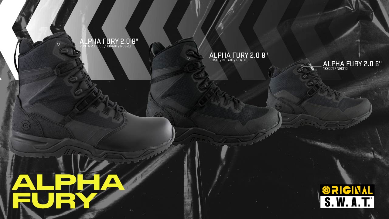 186401 BOTA ORIGINAL SWAT ALPHA FURY 2.0 8" PUNTA PULIBLE CON CIERRE NEGRA MARCA SWAT